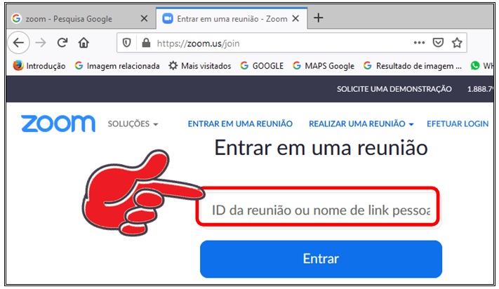 Após digitar o ID da reunião, clique em ENTRAR: