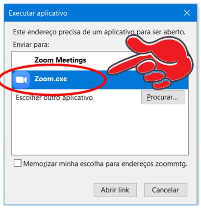 Você deve indicar qual aplicativo você quer rodar. Selecione Zoom.exe