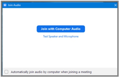 O ZOOM vai perguntar qual a mídia que você vai usar. Se você está entrando na reunião usando um NOTEBOOK, então é só pressiona pois o notebook já tem áudio e microfone, enquanto que um desktop não tem nem microfone e nem fone.