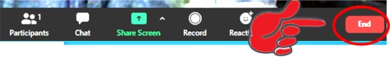 Por fim, tem um botão para sair da reunião. Você pode sair a qualquer tempo, mesmo durante a reunião. Não esqueça de enviar uma mensagem do tipo “tenho outro compromisso” antes de sair.