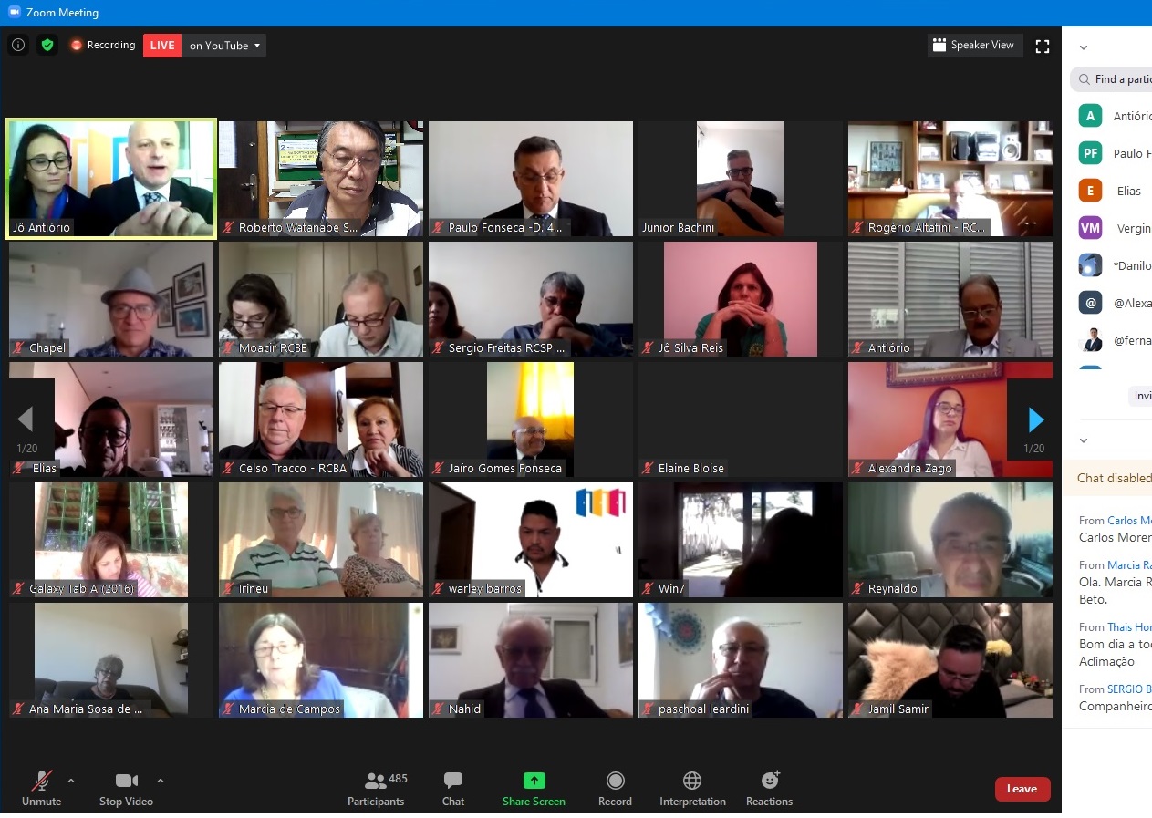 Por último, uma recomendação final. Você, como rotariano, deve portar o PIN do Rotary mesmo nessas reuniões virtuais nessa pandemia . E também o PIN do GEROI se já tiver sido agraciado com ele.