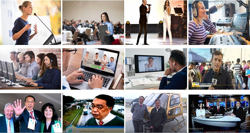 noticiário, telemarketing, videoconferência, entrevista na rua, voo de