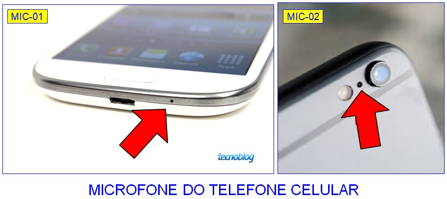 telefone celular, o microfone está montado no interior de um minúsculo furo, que