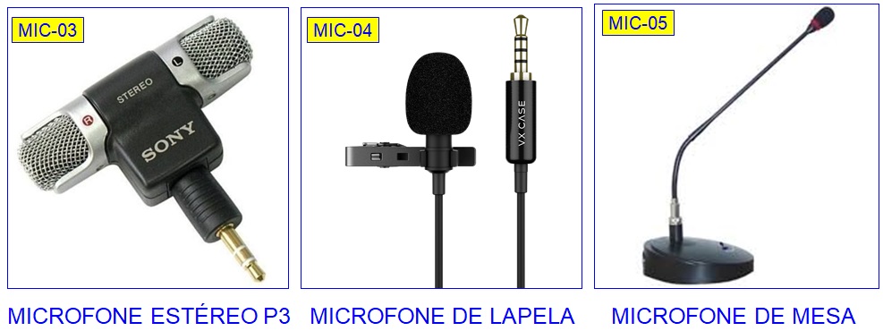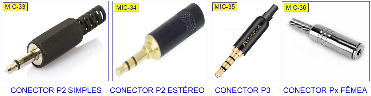 variedade muito grande de tipos de conectores para microfone. Vejamos os mais