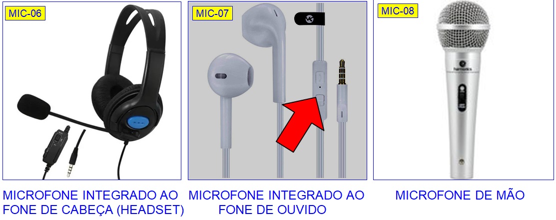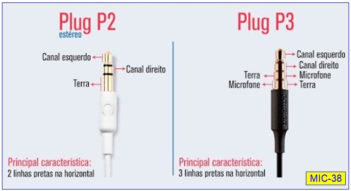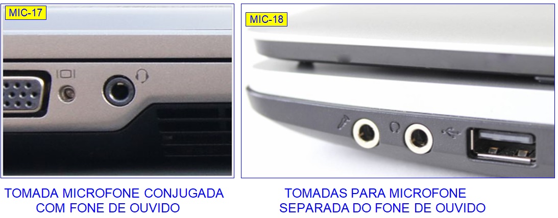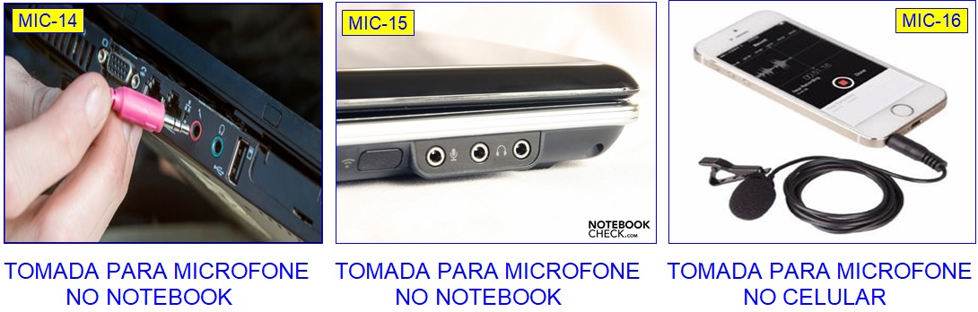Há tomadas que é só para o microfone e há tomadas para o microfone e, na mesma tomada, saída para os fones de ouvido - Tomada Conjugada: