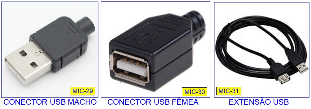USB MACHO de um lado e um conector USB FÊMEA do outro.