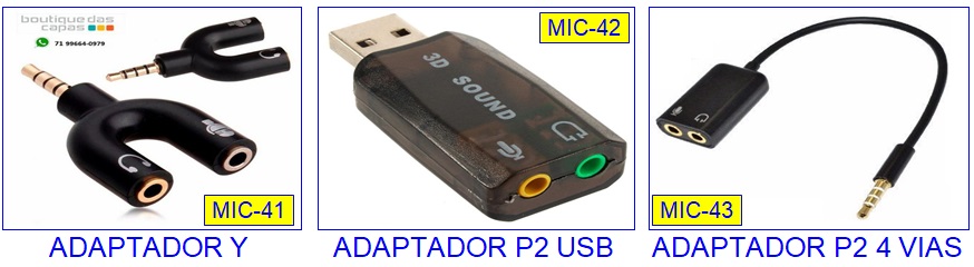 fone P2 estéreo separados num único conector USB que será conectado diretamente
