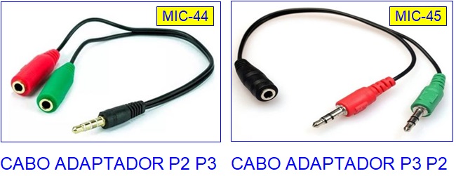Adaptador Y permite conectar um microfone P2 e um fone P2 estéreo separados num