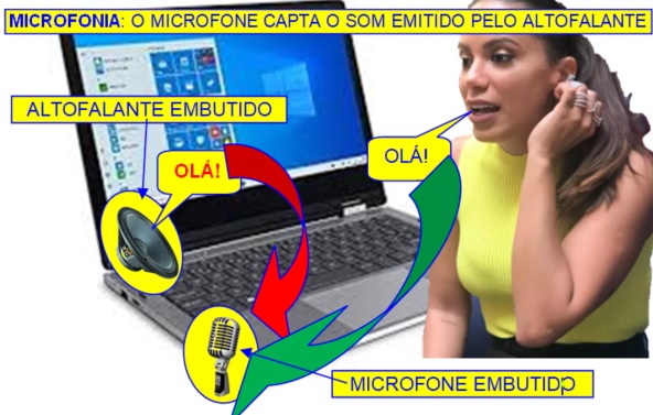 Microfonia é quando o som que sai do altofalante entra no microfone e sai de novo no altofalante e daí entra de novo no microfone e fica nesse sai-entra-sai-entra contínuo e muitas vezes de forma galopante, isto é, aumentando cada vez mais, passando a emitir um chiado estridente e alto.